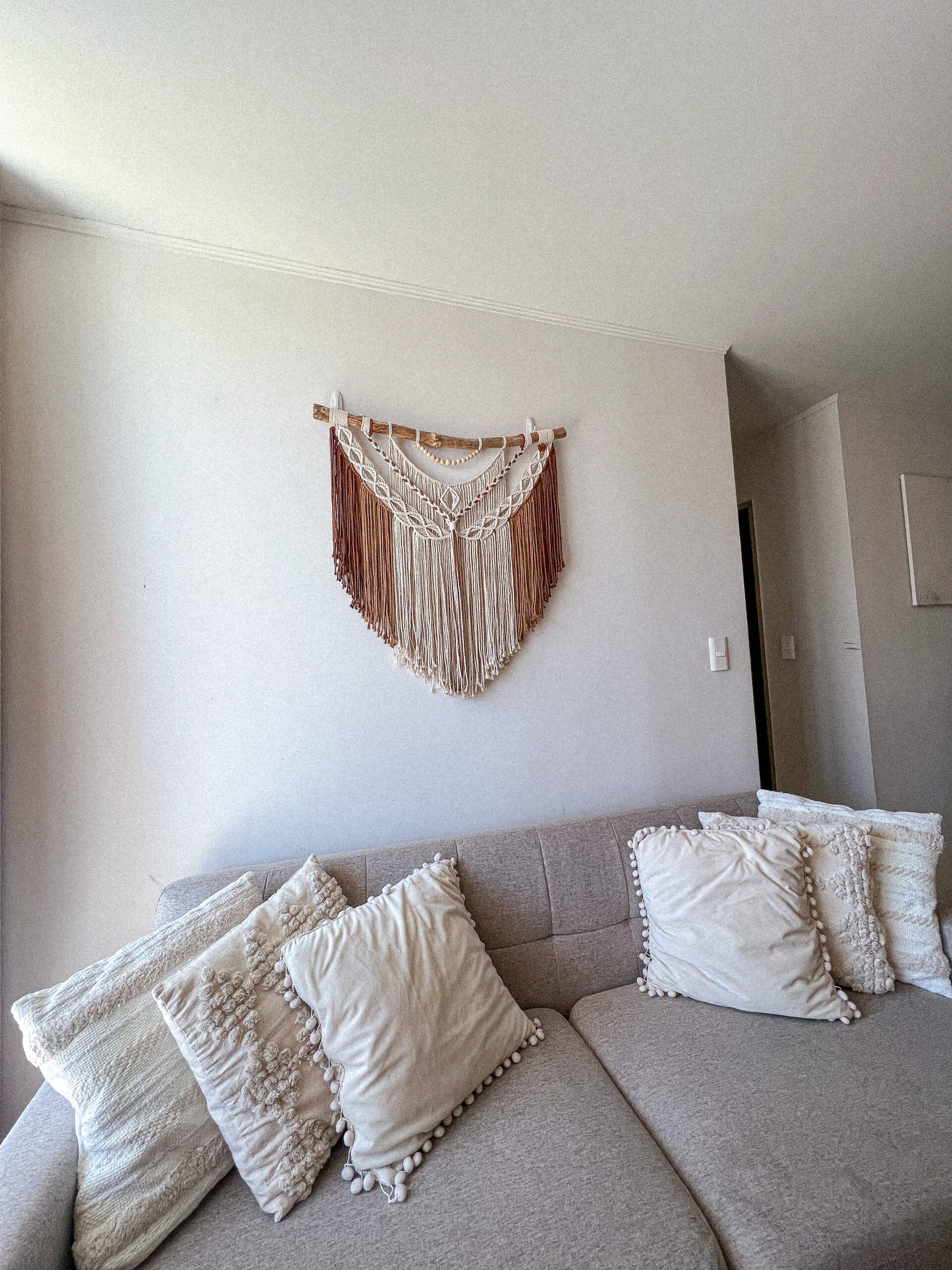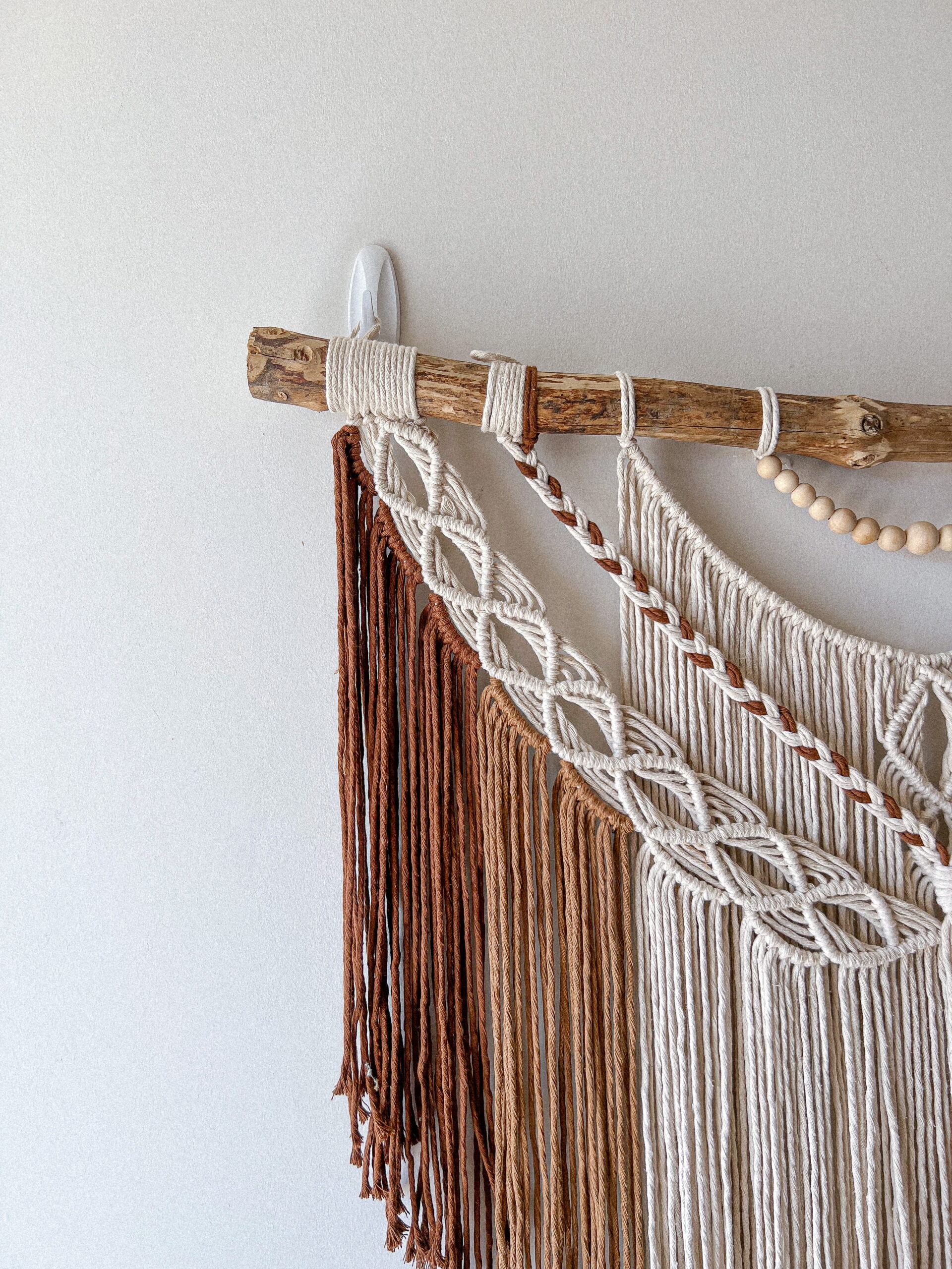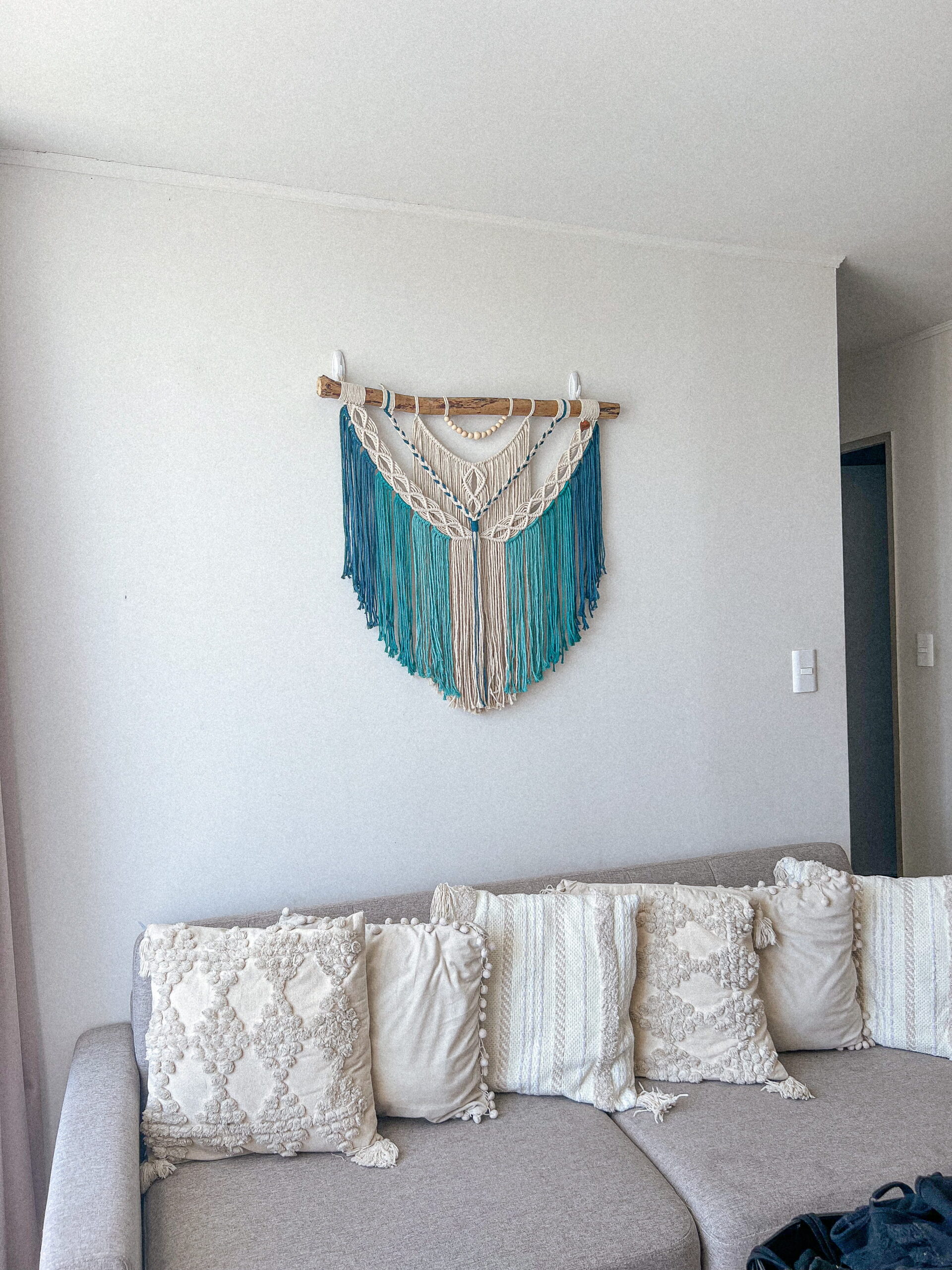 Tejido realizado a mano con algodón y polycotton peinado de 3 mm en una madera de 73 cm de ancho