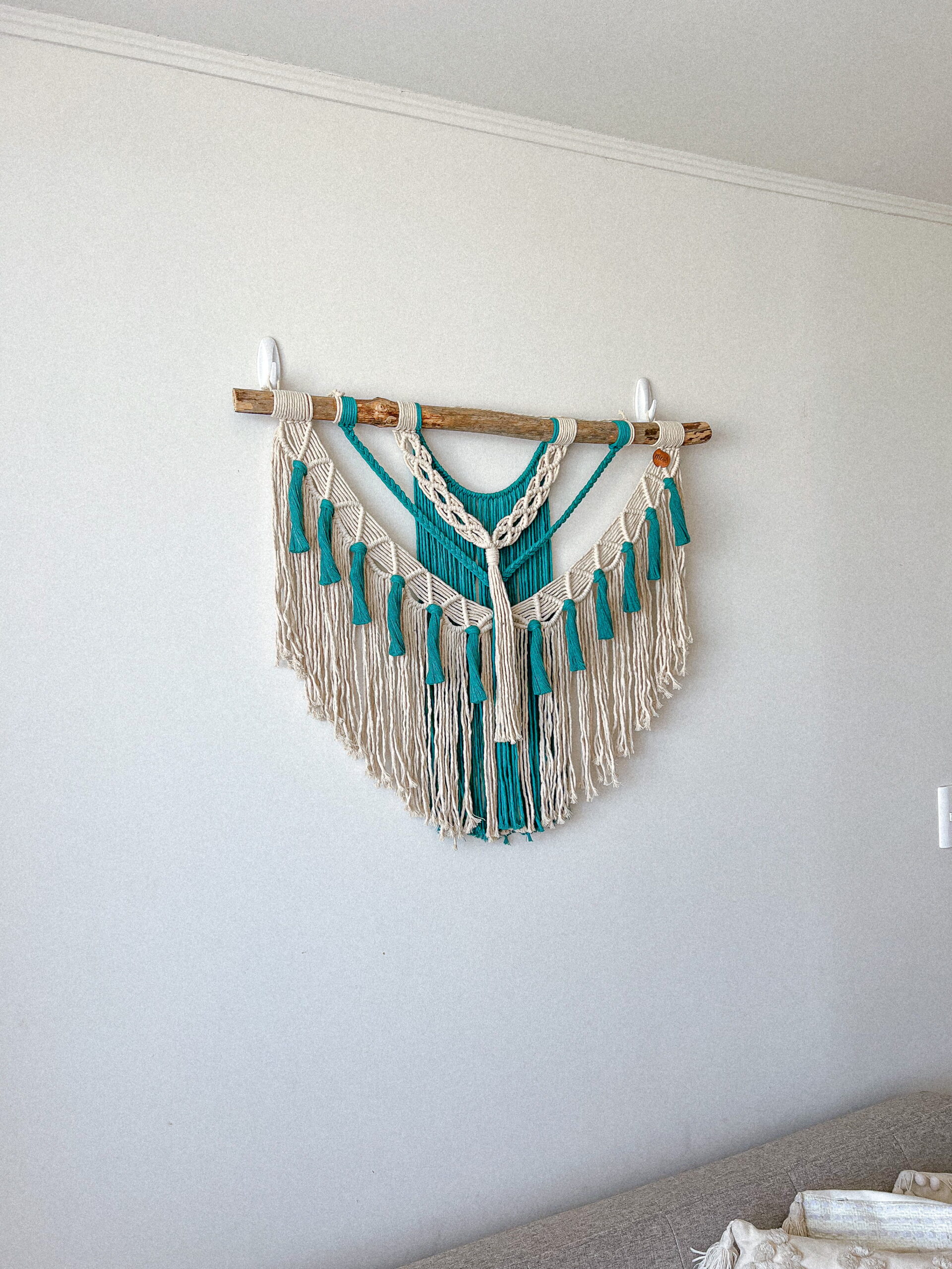 Tejido realizado a mano con algodón y polycotton peinado de 3 mm en una madera de 72 cm de ancho